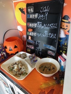本日の給食は、「牛肉のきんぴらちらし、牛乳、みそ汁、キャベツの赤じそあえ」でした。