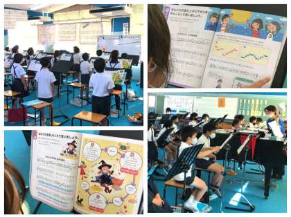 全員で発声練習の後、「とどけよう このゆめを」を元気よく合唱しています。また、「おかしのすきな まほう使い」の楽曲は、朗読の後「まほうの音楽」を入れようということで取り組んでいます。