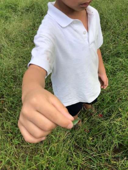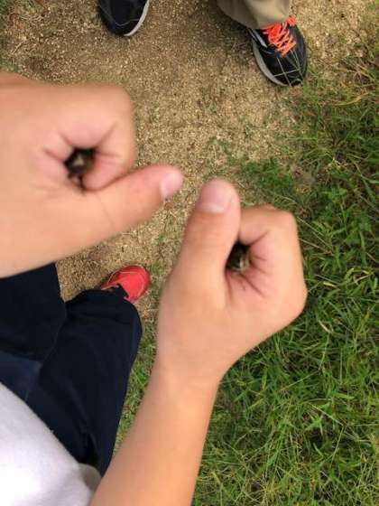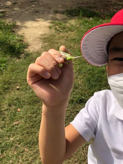 ショウリョウバッタやコオロギを見つけては大はしゃぎ。。。