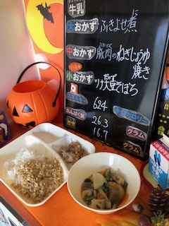 本日の給食は、「ご飯、牛乳、豚肉のねぎじょうゆ焼き、ふきよせ煮、ツナ大豆そぼろ」でした。