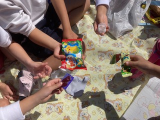お弁当の片付けをきっちりしてから楽しんでいます。