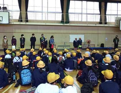 5年生が今日から一泊二日の自然体験学習に出発しました。