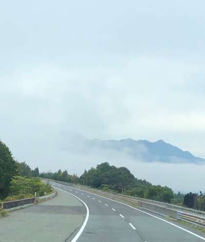 トンネルを抜けると、山なみは霧が立ち込め幽玄な景色です。子どもたちは、この景色に感動しています。
