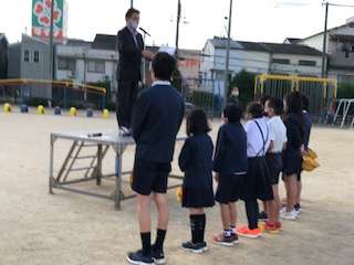 また、今週土曜日には土曜授業にて学習参観・作品展があり、これまでの学習の成果をしっかり見ていただけるよう努めてほしいこと、最後に新型コロナウイルスについての感染状況は、世界中で5000万人を超えフランス・ドイツなどではロックダウン(都市封鎖)を再びしていることから今後とも手洗い・マスク着用等々継続して注意することなどの話もしっかり聞くことができていました。