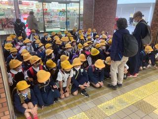 環状線一周と中之島公園方面です。東部市場駅に着いた後、電車でのマナーについて再確認しています。