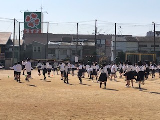 なわとび運動をしています。10級からチャレンジして、黒帯・達人・名人までがんばってほしいですね。