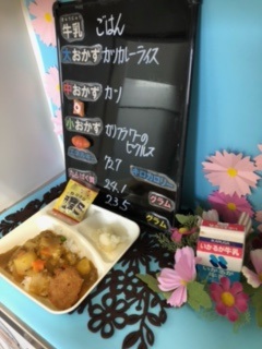 本日の給食は、「カツカレーライス、牛乳、カリフラワーのピクルス、いり黒豆」でした。