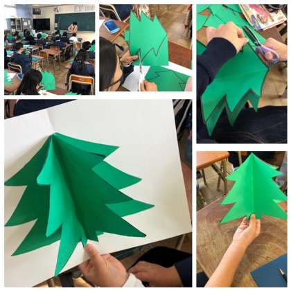 4年3組では、図画工作科の時間に、クリスマスに向けて、仕掛け工作の作品をつくっています。