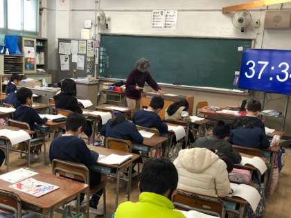 本日は、大阪市学力経年調査を実施しています。3年生から6年生までの児童が取り組んでいます。