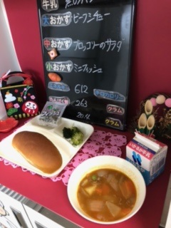 本日の給食は、「黒糖パン、牛乳、ビーフシチュー、ブロッコリーのサラダ、ミニフィッシュ」でした。