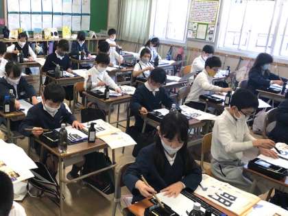 「明るい心」と手本を見ながら真剣に書く表情が窺えました。