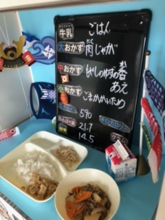 本日の給食は、「肉じゃが、もやしのゆずの香あえ、ごまかかいため、ごはん、牛乳」でした。