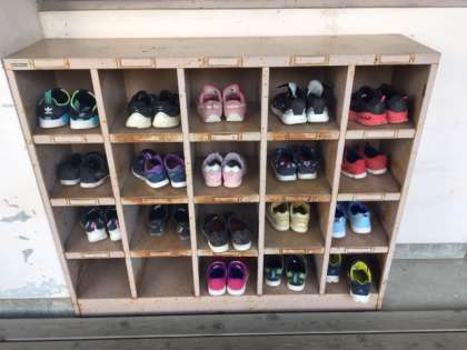 下駄箱のくつのかかとが、揃えられて入っていました。