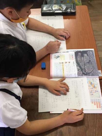 しばらくすると、「あ、ほんまやぁ!」と、答えを見つけてうれしそうに書き込んでいました。