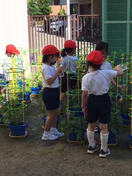 「朝顔にも朝ごはんあげなきゃね〜」と