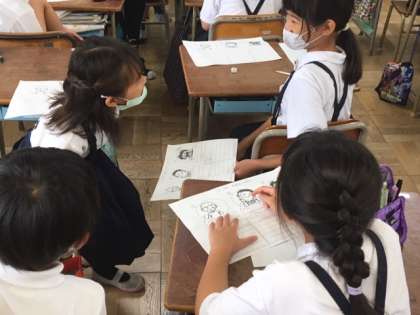 ・困っている人とかうれしそうにしている人の気持ちやできごとを考えたり、友だちと伝え合ったりした。勉強になったしよい授業だったと思う。