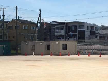 学校だより(7月号)でお知らせしていましたように、育和小学校では今年度夏休みから、4号館校舎等の長寿命化改修工事を行います。実はこの日に向け、随分前から管理作業員さんが少しずつ作業を進め、昨日は、教職員みんなで工事に向け、大量の物品を梱包・移動しました。一方、運動場ではプレハブ小屋が設置されました。(運動場で組み立てられるのかなと思っていたのですが、なんとそのまま「ザ・プレハブ小屋」の状態で運ばれて来ました。)これから、資材置き場として校庭のプール前辺りから周りを塀で囲み、外壁や教室の改修等の工事へと進んでいきます。近隣の皆さまには、夏休みの間から、工事の音などでご迷惑をおかけすることもあるかと思われますが、ご理解とご協力をいただきますようよろしくお願いいたします。