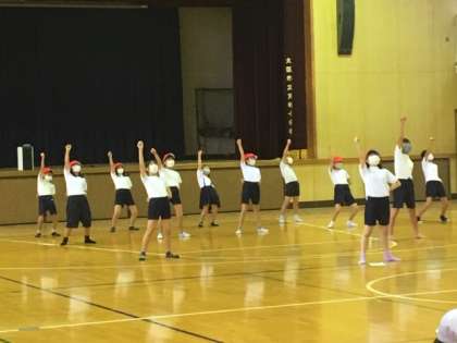 運動場が使えなかったので、応援団も今日は、体育館での練習です。