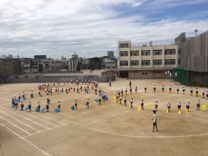 運動場では、みんなできれいな円を描きながら、フラッグの音も「ブンッ、ブンッ!」と気合いが入っています。