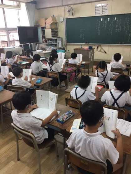 いつもそうしているのでしょう。「本を読む姿勢になりましょう」の一言で、子どもたちが次々と本を持って、背筋をピンと伸ばし始めました。