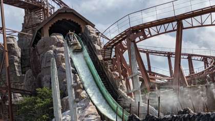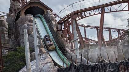 急流すべりは、かなりの高さから滑り落ちてきます。多少濡れても、へっちゃらヘッチャラです。