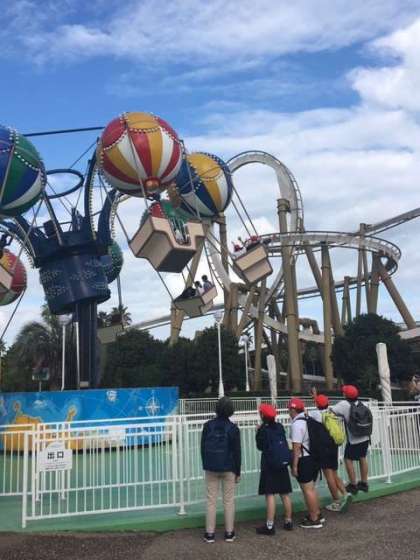 乗り物によっては、得意な子、苦手な子がいます。乗る子は「行ってくるね」待つ子は「下から観てるわ。がんばってきてー」終わったら「お帰り、どうやった?」