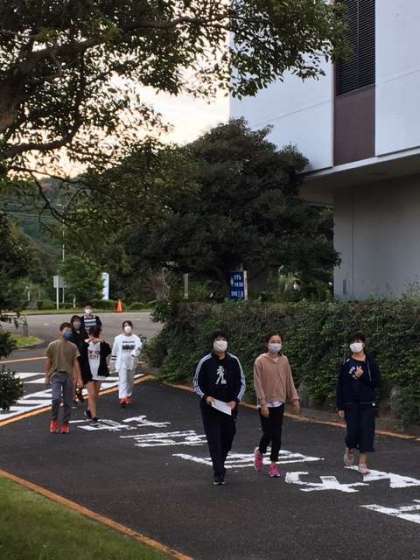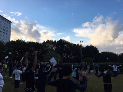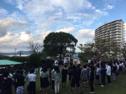 時間を守ること、しおりをよく見て確認すること、話をよく聞いて覚えること・・・。青空のもと、今日も1日がんばりましょう