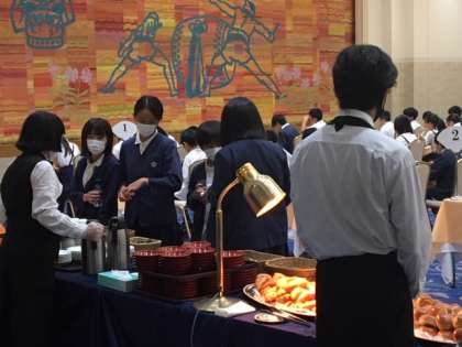 2日めの朝食です。今日はご飯のほかに、パンも用意してくださっていました。1日のエネルギー、しっかり摂りましょうね。