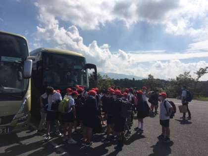 モクモクファームに到着しました。車内では昨日の睡眠を取り返そうと爆睡している子、ビデオのストーリーに集中して観ている子、さまざまでした。