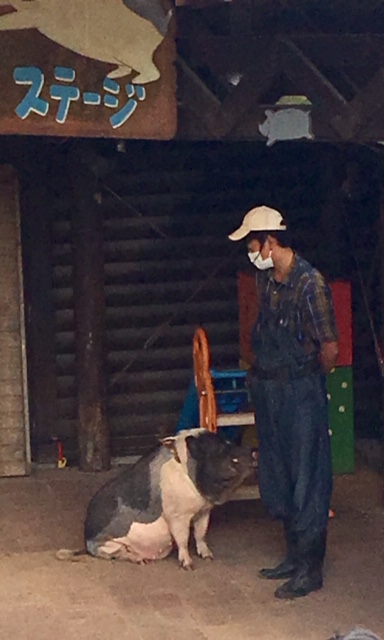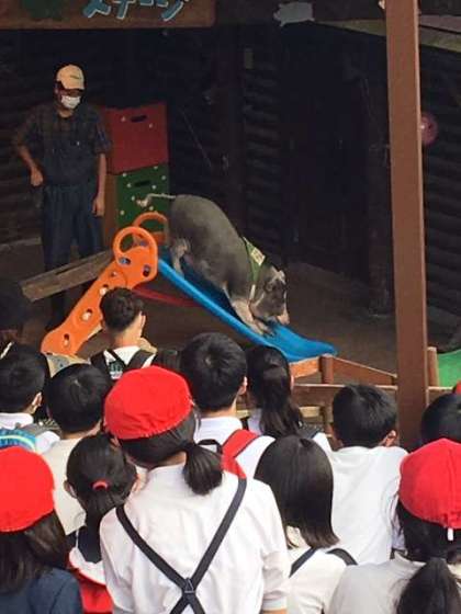 少し場所を移動して、ミニブタさんのショータイムを観に来ました。
