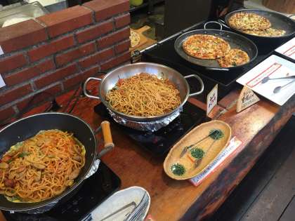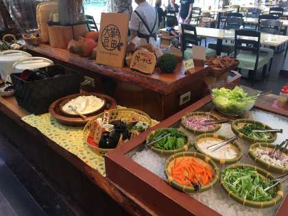 レストランに到着しました。これが修学旅行で、最後の食事タイムになります。すごいメニューが並んでいます。