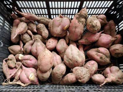 長いつるを引っ張って取ったら、スコップや手で、丁寧に掘っていきます。