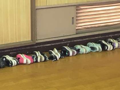 がんばって聴いてるなぁと思いながら、ふと、床横を見て見ると、子どもたちの靴がずらりと並んでいました。しかも、靴裏が床につかないように、裏どうしをちゃんと向い合わせにしてあって・・・。