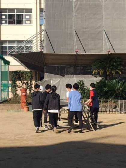 実はみなさん、重たい重たい朝礼台を運ぶために、最後まで待っていてくれたのです。「せーの!」とかけ声をかけ、えっちらおっちら。