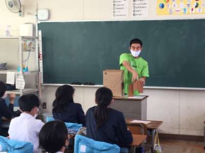 まずは導入です。「はてなボックス」からこれまで学習してきた立体が取り出されます。