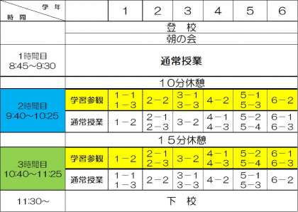 (学級により時間が異なります。)