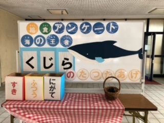 本日は、「くじらのたつたあげ」の給食アンケートをしました。