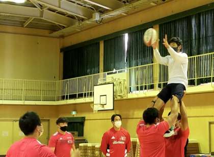 また、実際にボールにさわって身体を動かしたり、ラインアウトのときに持ち上げてもらったりする体験もできました。