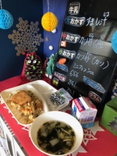 本日の給食は、「カツ丼、すまし汁、ミニフィッシュ、牛乳」でした。
