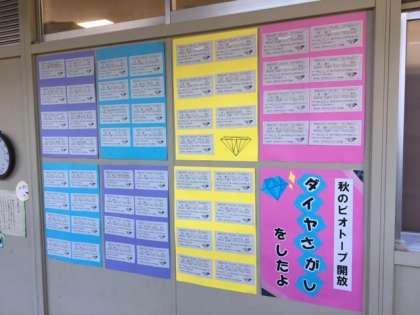 「どれどれ、私のクラスの子どもたちはいるかな・・・」と担任の先生が見ていたり、休み時間には子どもたちも「あ!私のってる〜!」「うれしいな」と見にきたり。
