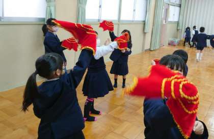 10月には、1年生みんなで韓国・朝鮮のあそびをしました。ソンセンニムにも来ていただいて、教えてもらった挨拶をしてから、元気いっぱい、楽しくあそびました。