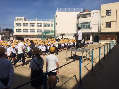 運動場で全校朝会