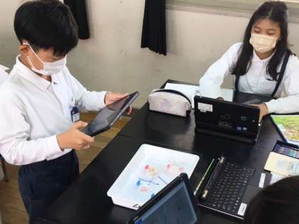 また、発芽結果のようすを、タブレットで「パチリ」。記録として残しておきます。