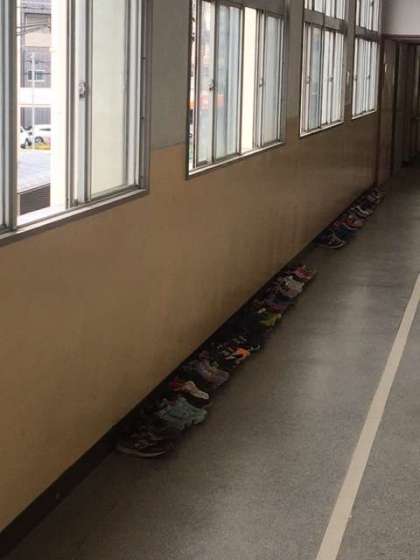 中をのぞくと、2年生が今度行く遠足のことについて、しおりを見ながら、先生の話を一生懸命聞いていました。