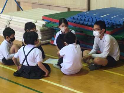 今日は、1年・3年・6年生が集まって、まずは顔合わせ。