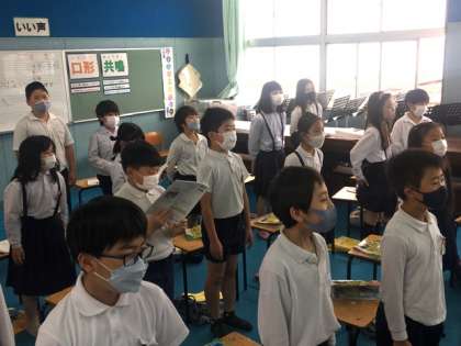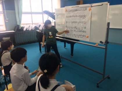 音楽の時間に、子どもたちの歌声が聞こえてきました。