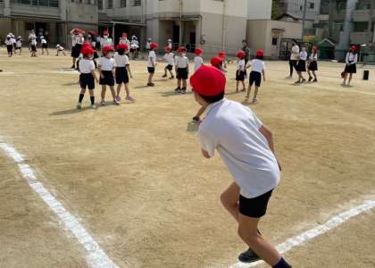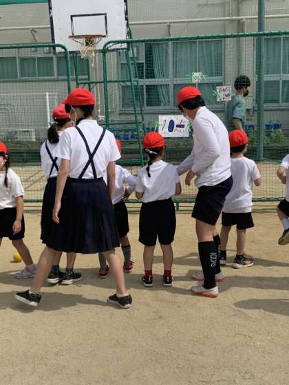 1年生のために、どうやったらうまく投げれるようになるのかを考え、優しく教えてあげる姿が見られました。自分たちが楽しむのではなく、1年生が楽しめるように動く6年生はさすが最高学年です。