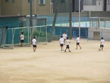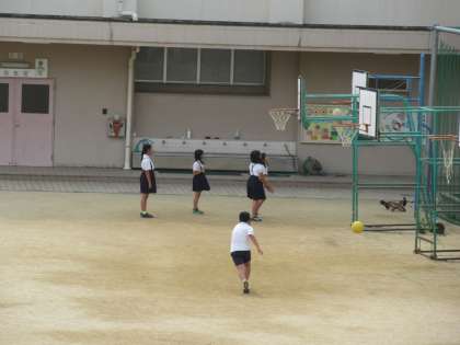 今日の放課後の様子です。運動場で友だちとドッジボールやバスケットボールをしながら遊んでいます。