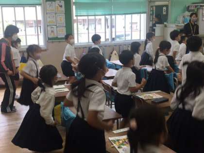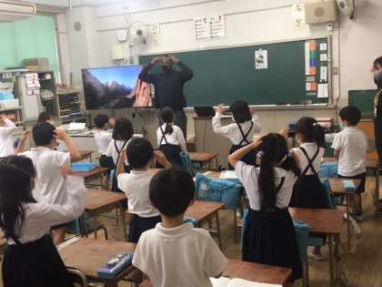 先生のかけ声をよくききながら、リズムに合わせて動作化します。