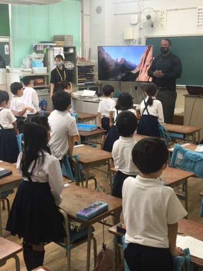 今日はC-NETの先生が、1年生の教室に来てくれました。